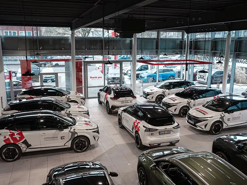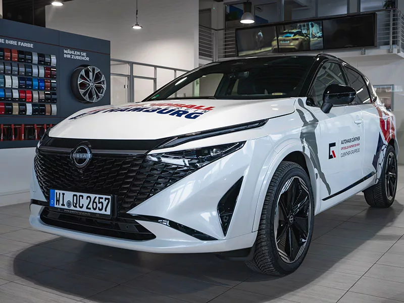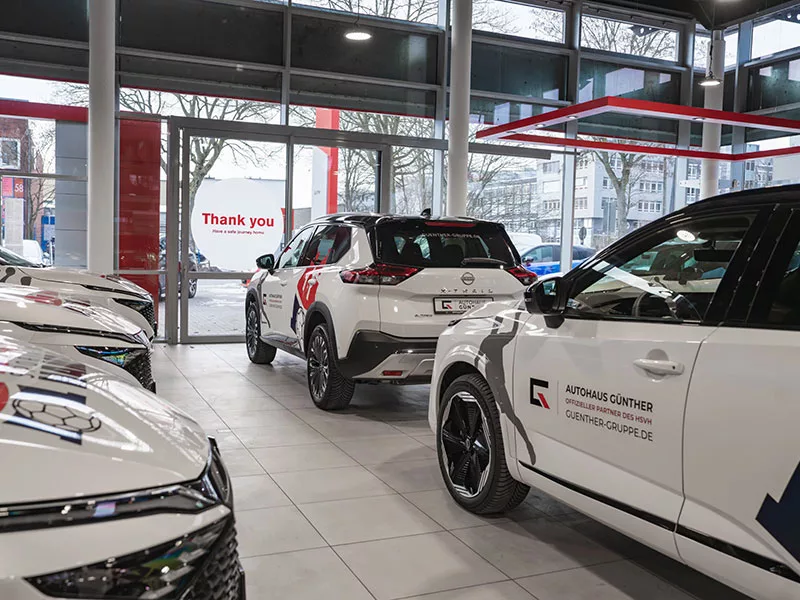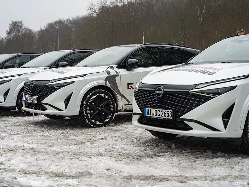 Zum Start der Zusammenarbeit stellen wir dem HSV Handball insgesamt acht Fahrzeuge zur Verfügung. Dazu zählen sieben Nissan Qashqai N-Design Mild Hybrid sowie ein Nissan X-Trail, die künftig im sportlichen und organisatorischen Alltag des Vereins eingesetzt werden, auf dem Weg zu Heim- und Auswärtsspielen, im Trainingsbetrieb und bei offiziellen Terminen.